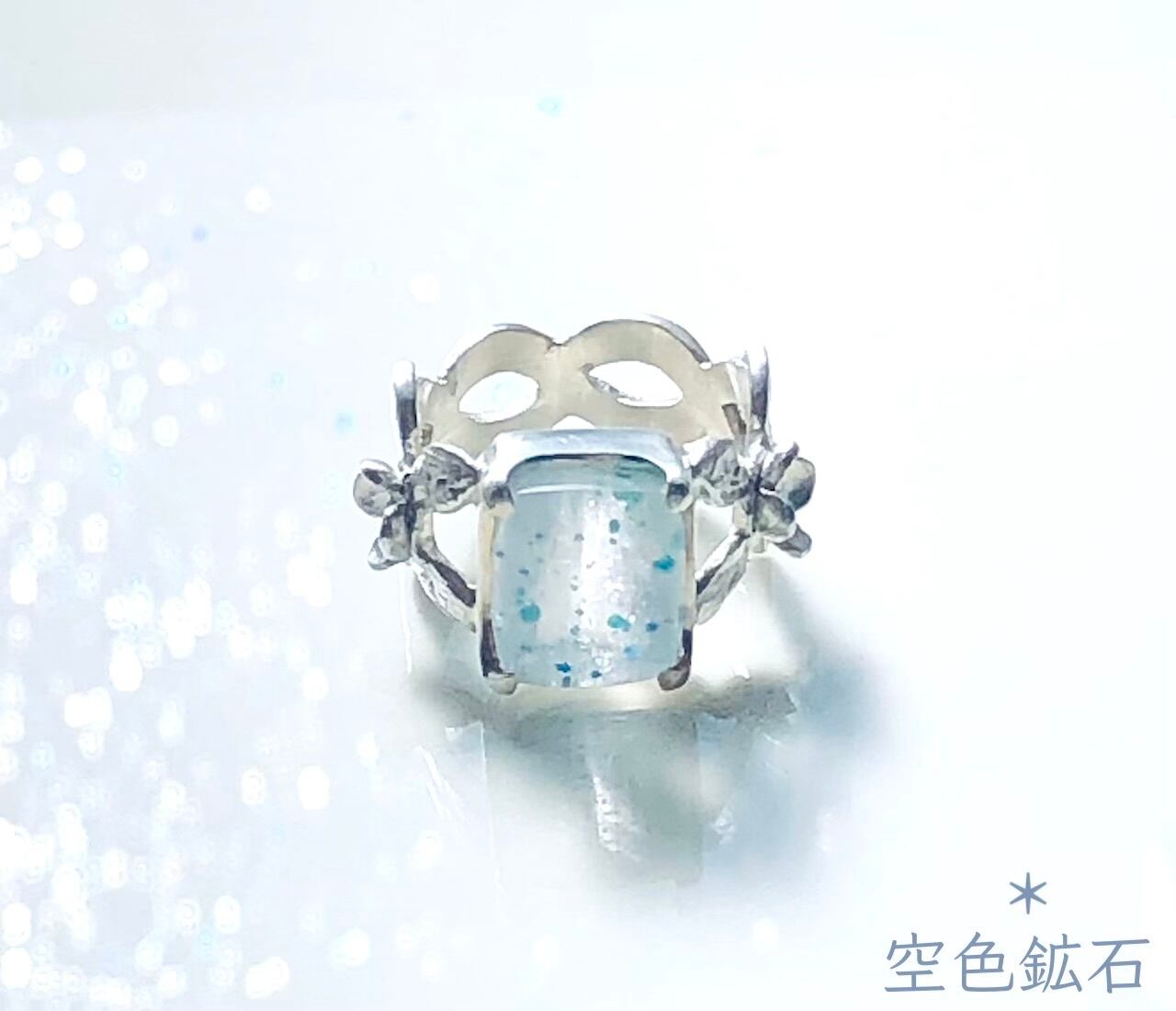 水晶のサイドに立体のお花を飾って